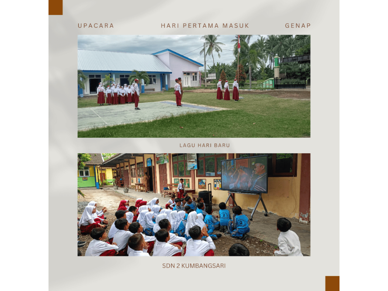 Pada hari ini bertepatan dengan tanggal 05 Januari 2026 yang merupakan Hari Pertama masuk untuk semster genap kami melaksanakan upacara bendera dengan penuh khidmat. Bapak Andi Firmansah, S.Pd.SD., Gr. selaku pembina upacara menyampaikan pesan agar menjaga kebersihan dan tidak boleh mnecorat coret tembok sekolah dan disiplin serta rajin belajar. Setelah upacara terakhir yaitu meyanyikan lagu "Hari Baru" yakni berfokus pada semangat, kebersamaan, dan motivasi untuk menuntut ilmu, seperti "Hari baru, semangat baru, gembira menuntut ilmu," "Gapai mimpi, ukir prestasi," dan ajakan "Mari bersama-sama, penuh suka cita, gapai cita mulia, masa depan jaya," serta penekanan pada kebiasaan baik dan karakter kuat sebagai generasi hebat. Lagu ini bertujuan untuk menyemangati siswa agar datang ke sekolah dengan pikiran positif, penuh semangat, dan saling mendukung.