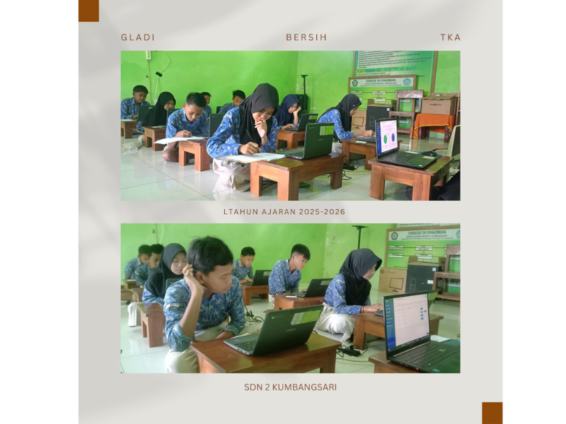 Pendidikan di Indonesia terus berkembang untuk mendorong pembelajaran berkualitas dan mengukur kemampuan murid dengan lebih baik. Untuk mendukung hal tersebut, salah satu kegiatan yang sedang dipersiapkan oleh Kemendikdasmen yaitu Tes Kemampuan Akademik (TKA). TKA dibuat berdasarkan landasan kebijakan Permendikdasmen Nomor 9 Tahun 2025. Pada Hari Rabu dan Kamis tanggal 11-12 Maret 2026 SDN 2 KUMBANGSARI mengikuti Gladi Bersib TKA untuk kelas 6 pada tahun ajaran 2025-2026. Tujuan TKA adalah menjawab tantangan penilaian yang beragam antar sekolah dengan menyediakan bentuk penguatan capaian akademik murid yang objektif dan terstandar. Kemudian TKA menjadi salah satu bahan pertimbangan seleksi ke jenjang pendidikan selanjutnya seperti Seleksi Nasional Berdasarkan Prestasi (SNBP) dan seleksi lainnya, serta menyetarakan hasil belajar jalur pendidikan formal dan nonformal.